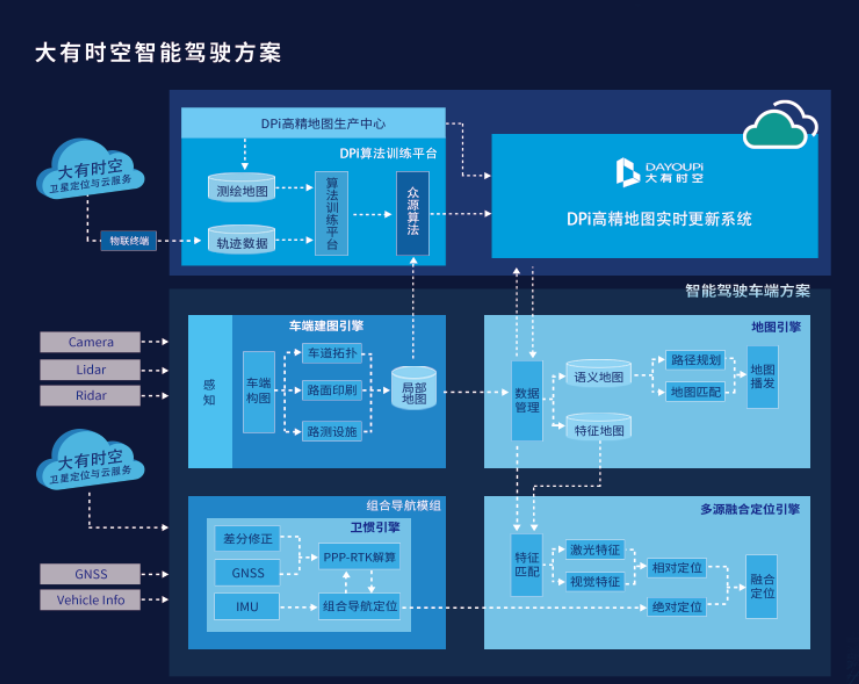 作为以软件定义硬件的新型汽车零部件供应商,大有时空以卫星高精度定位服务为基础,发挥“卫星定位一张网,智能驾驶全球通”的优势,为智能汽车和智慧出行提供云端高精度定位服务、车端卫惯组合算法与模组、多源融合定位算法与模组、自动化建图算法和地图更新服务,为智驾方案商和车企提供智驾训练、仿真和智驾规划决策所需要的精准时空数据。